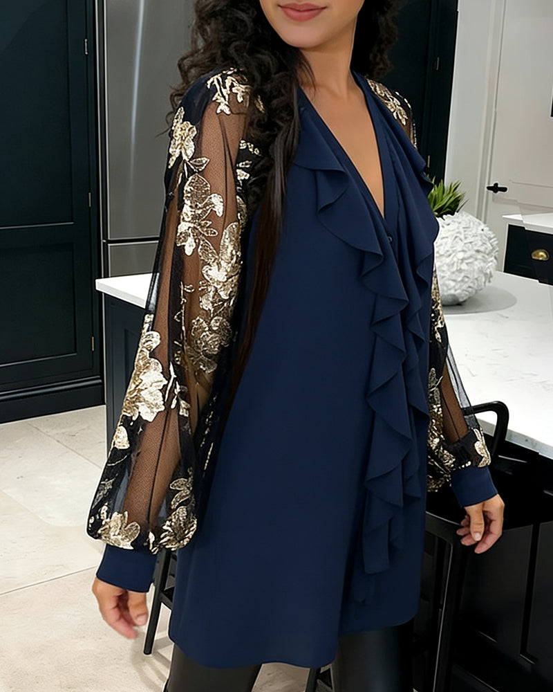 Fashionable Lotus Leaf Knit Loose Blouse